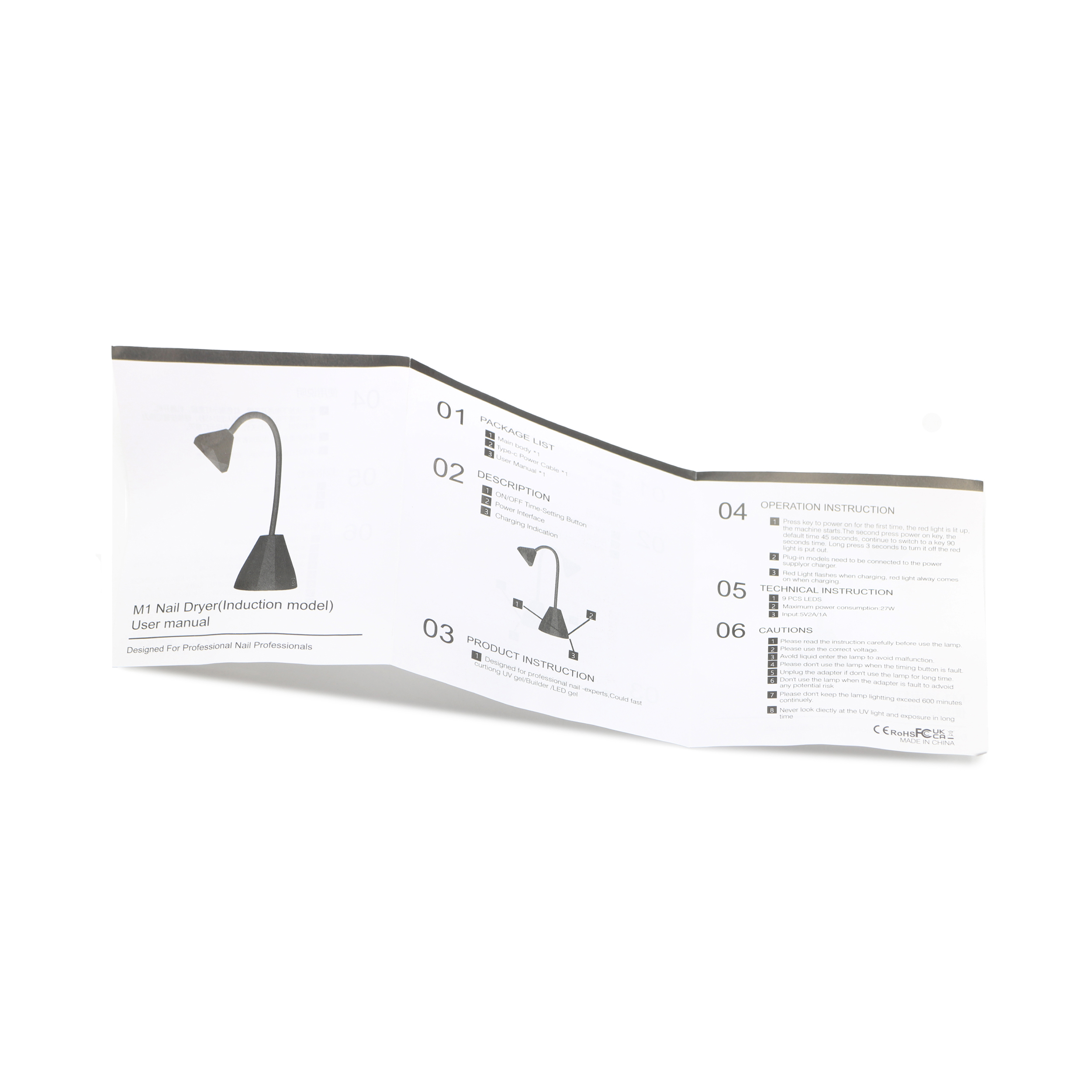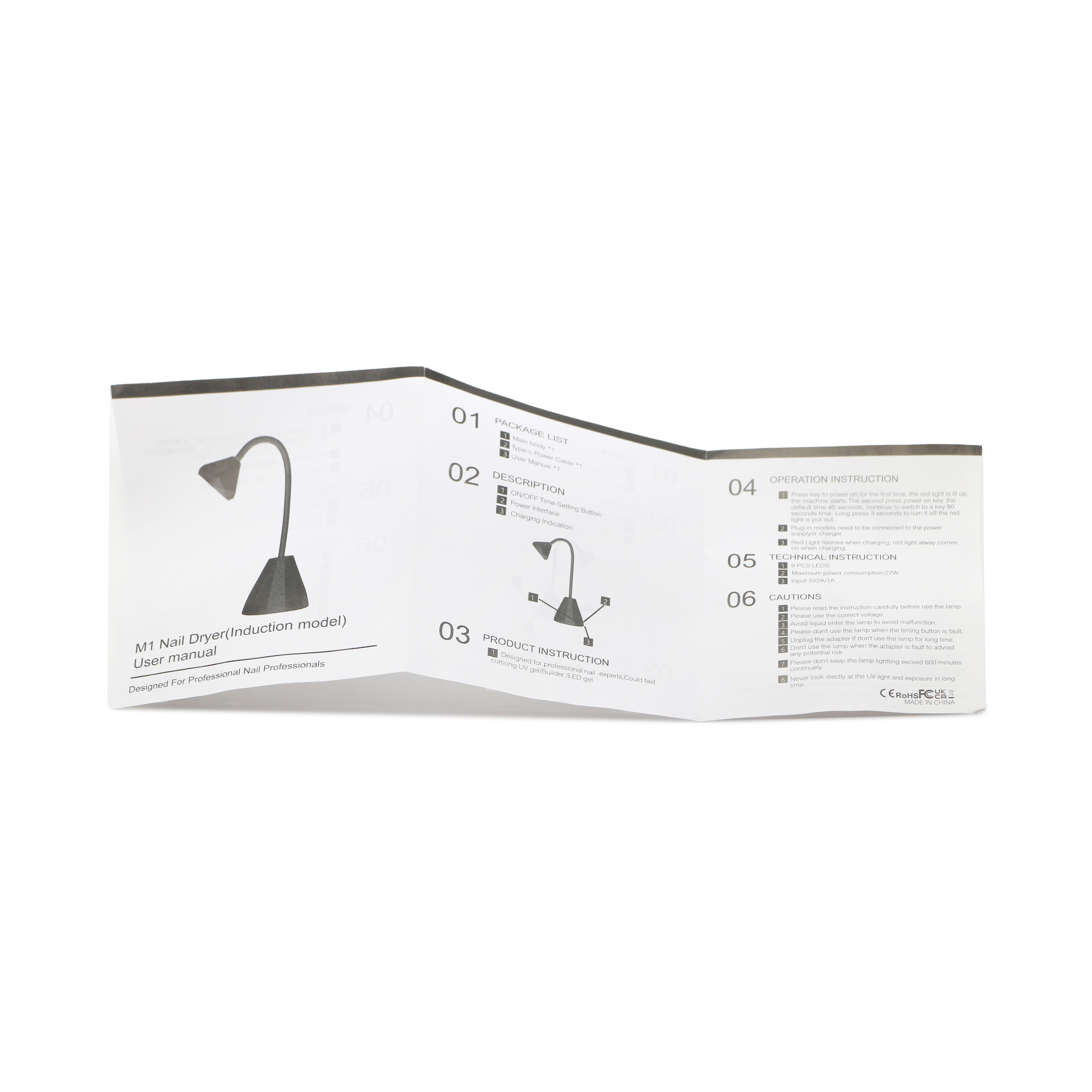 Лампа для маникюра led/ uv 27W, M1, розовая