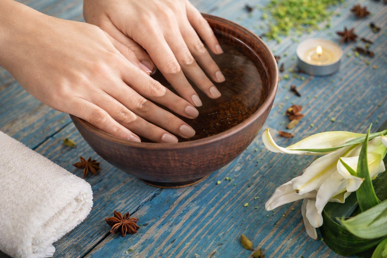 После замачивания важно увлажнить ногти, чтобы сохранить их здоровье и стимулировать рост. Эффективное домашнее средство для этого — смесь оливкового масла и мелко нарезанного чеснока. Наносите её раз в неделю: чеснок богат селеном, который укрепляет ногти и способствует их росту, а витамин E из масла глубоко увлажняет и питает ногтевую пластину.