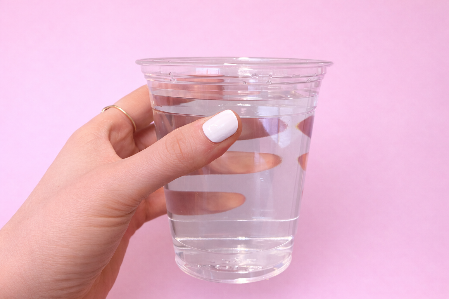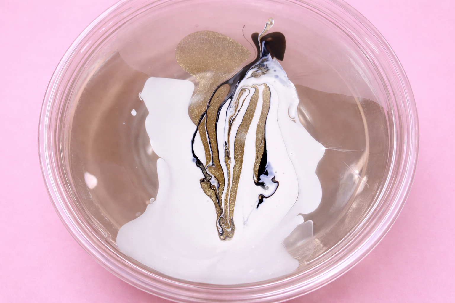 После того как ногти полностью высохнут, капните несколько оттенков лака в стакан с водой комнатной температуры.