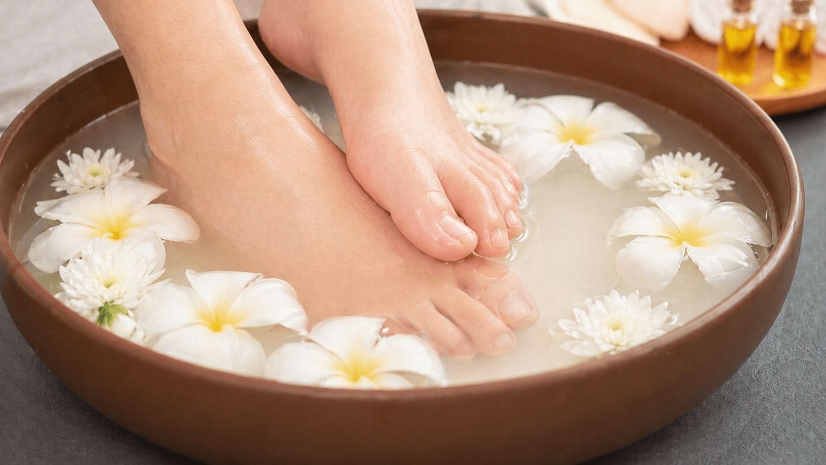 • тёплая вода и ванночка для ног