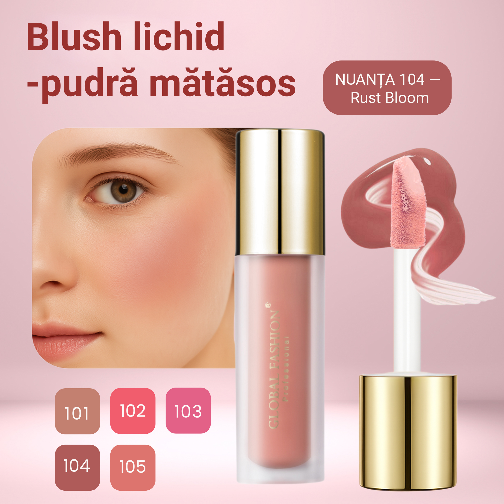 🌸 Fard de obraz Global Fashion – #104 Culoare delicată, prospețime naturală și luminozitate instantă 🌸