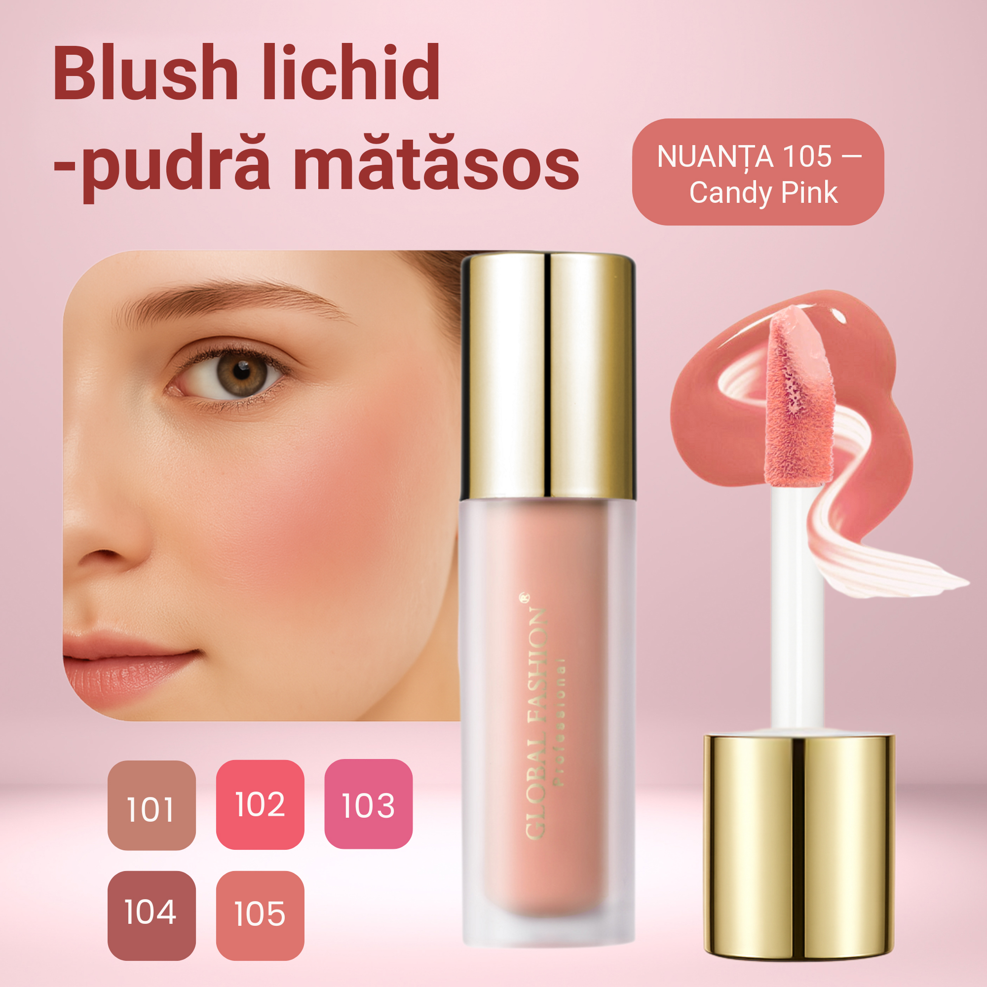 🌸 Fard de obraz Global Fashion – #105 Culoare naturală, prospețime instantă și efect luminos 🌸