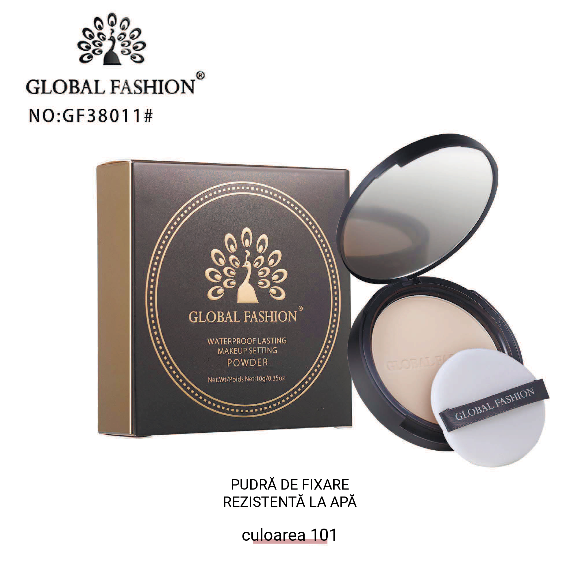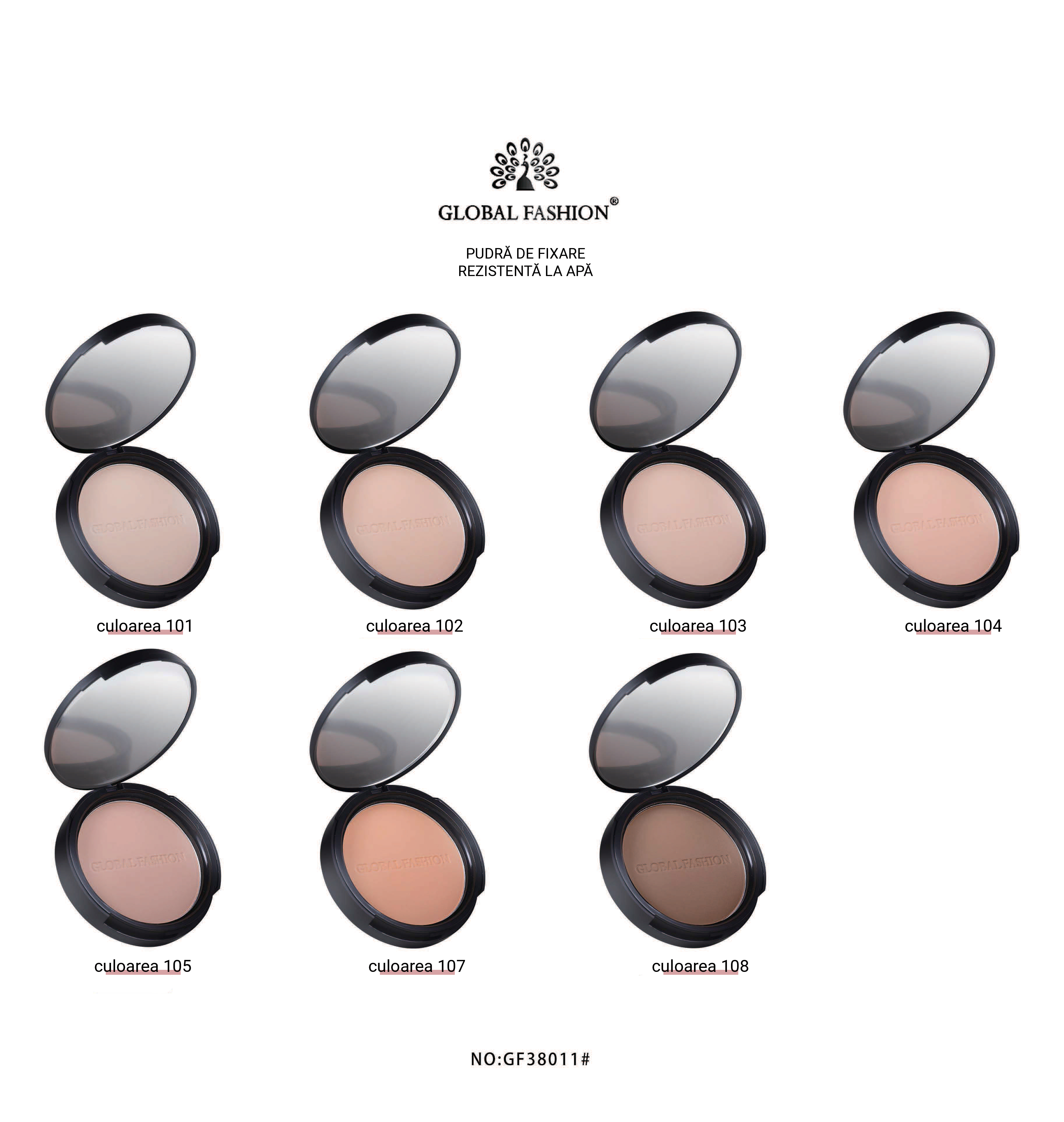 Pudră rezistentă la apă Global Fashion – #101 – Ten impecabil, mat și uniform în orice condiții!
