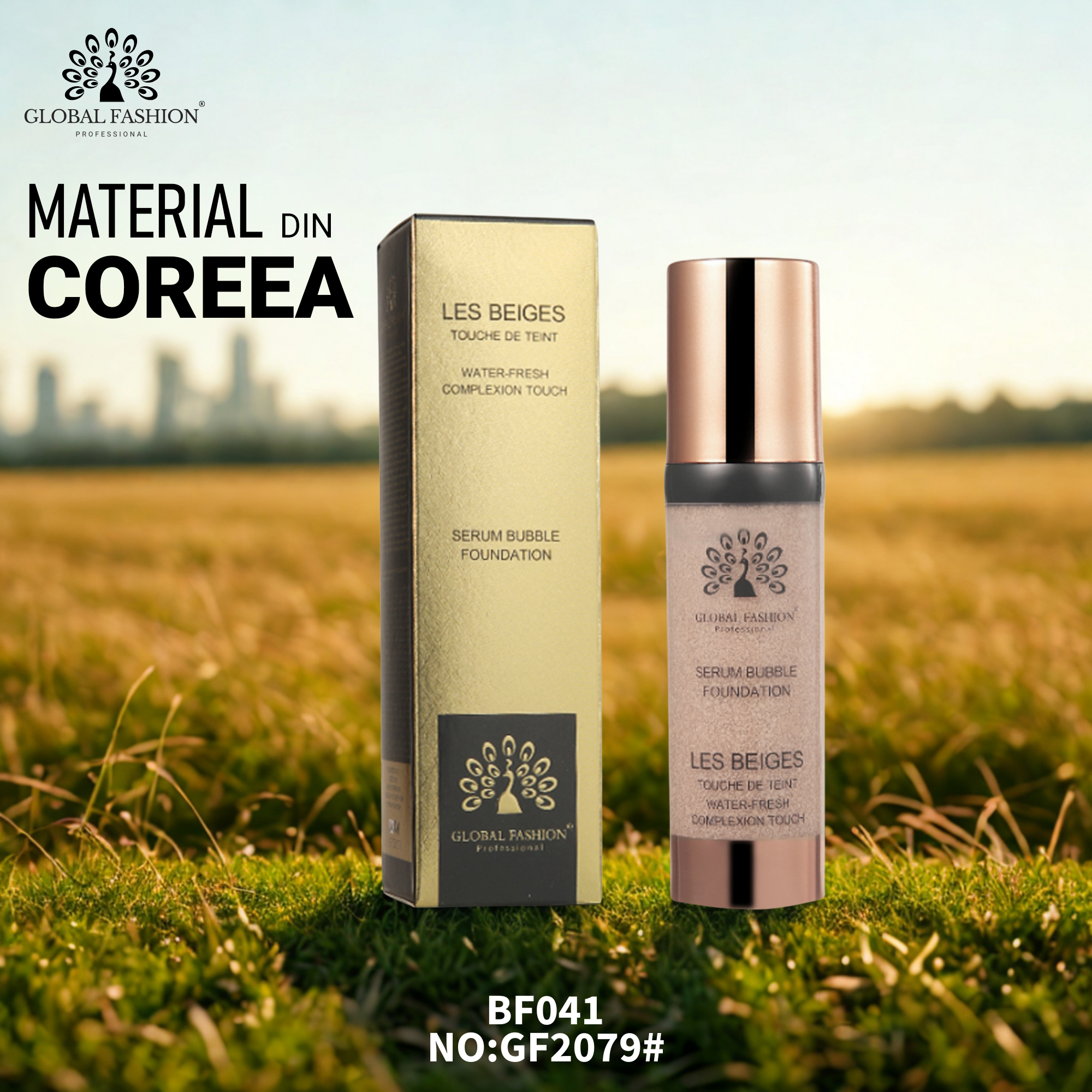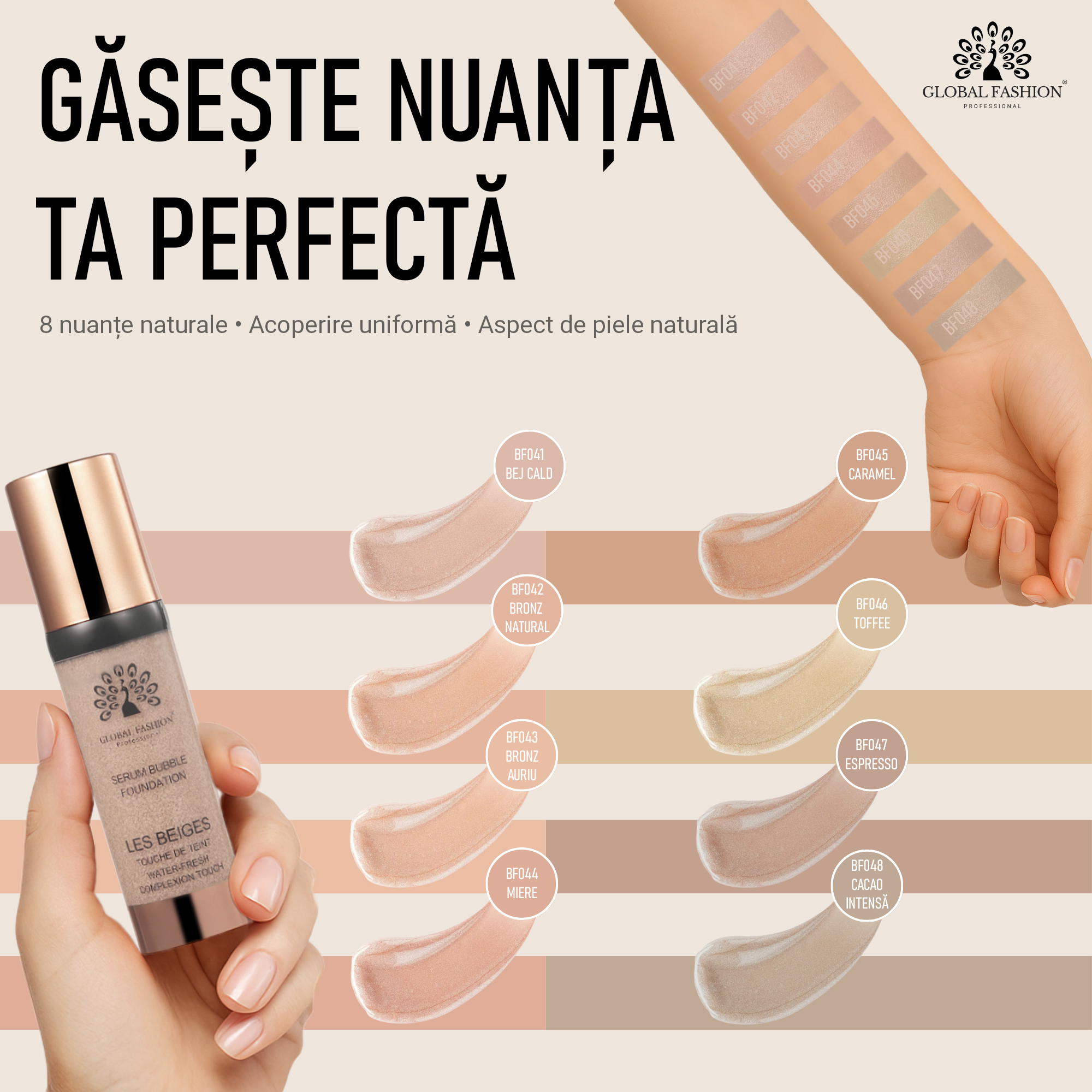 Fond de ten Global Fashion, Serum Bubble Foundation – BF041, Warm Beige, 30 ml – Acoperire impecabilă și hidratare intensă pentru un look natural și luminos!