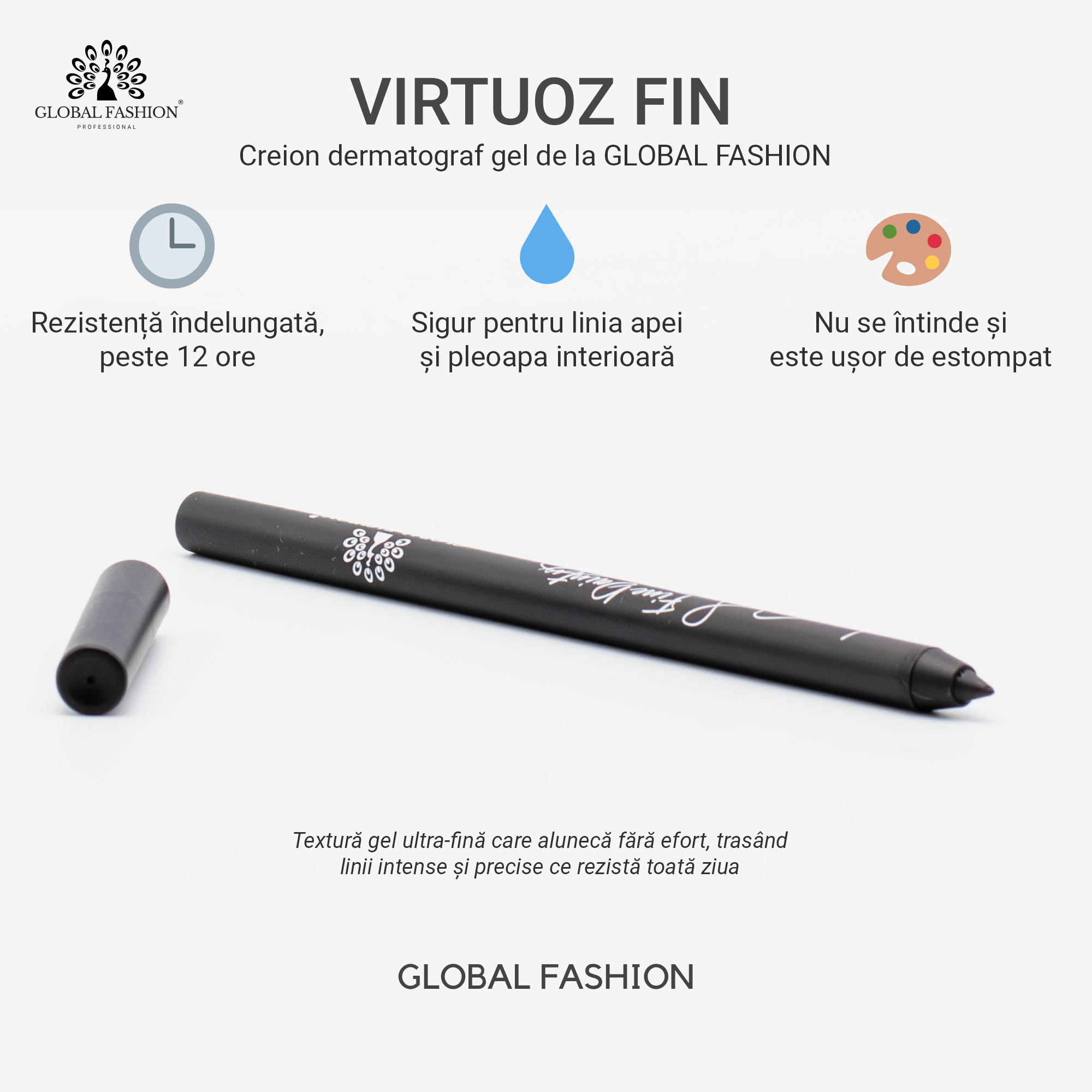 Creion gel de ochi Global Fashion – Precizie, pigment intens și calitate premium coreeană