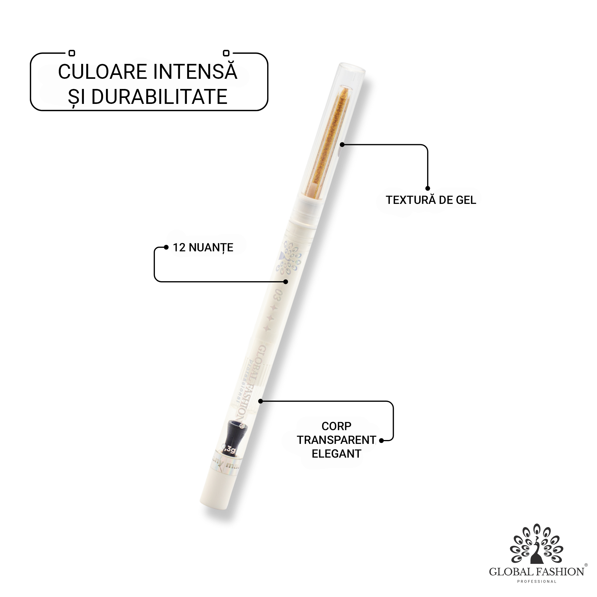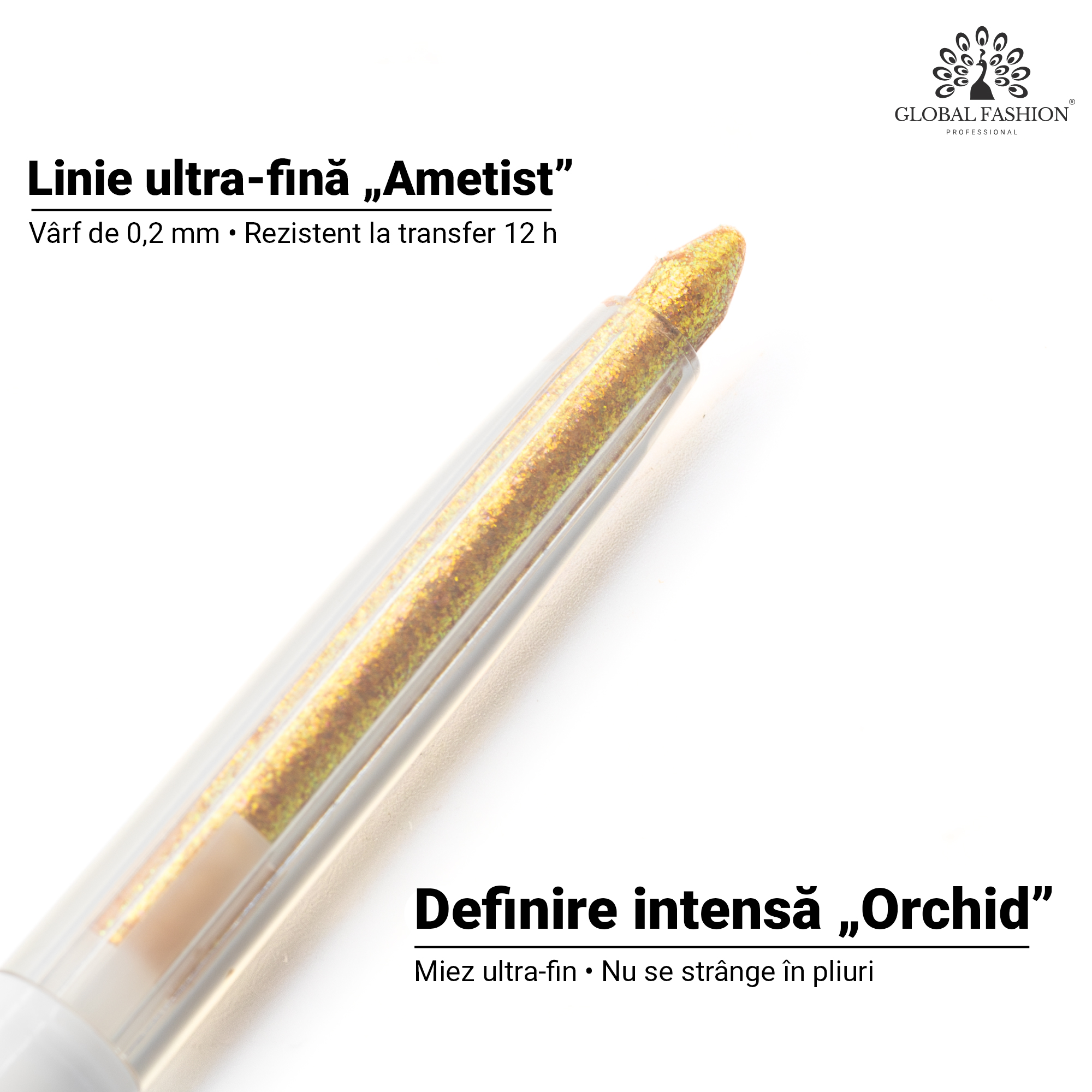 Creion de ochi moale, gel, Global Fashion – Dourado cu sclipici