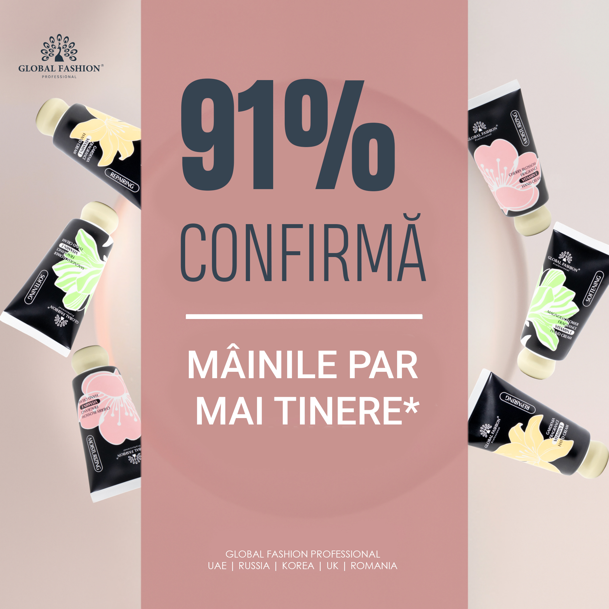 Răsfață-ți pielea cu crema de mâini Global Fashion, îmbogățită cu vitamina E și delicat parfumată cu aromă de floare de cireș. Formula sa nutritivă oferă hidratare intensă și protecție zilnică, lăsând pielea catifelată și fină la atingere.