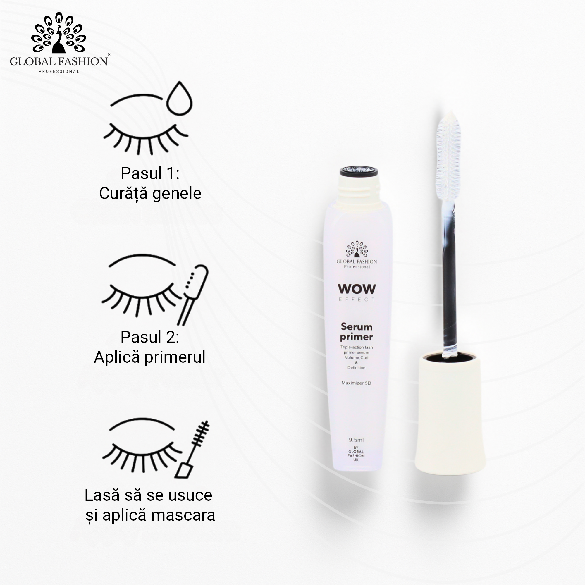 ✨ Bază pentru rimel Global Fashion – Serum Primer 5D Wow Effect, GF4003 ✨ Gene mai puternice, mai lungi și mai voluminoase de la prima aplicare!