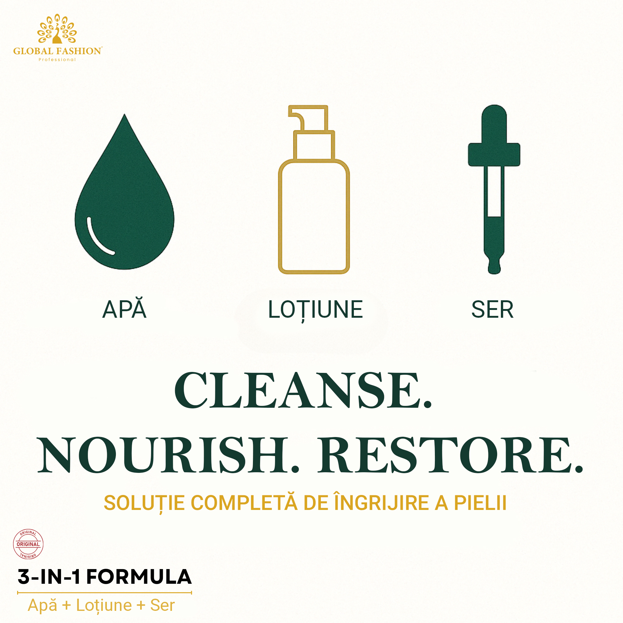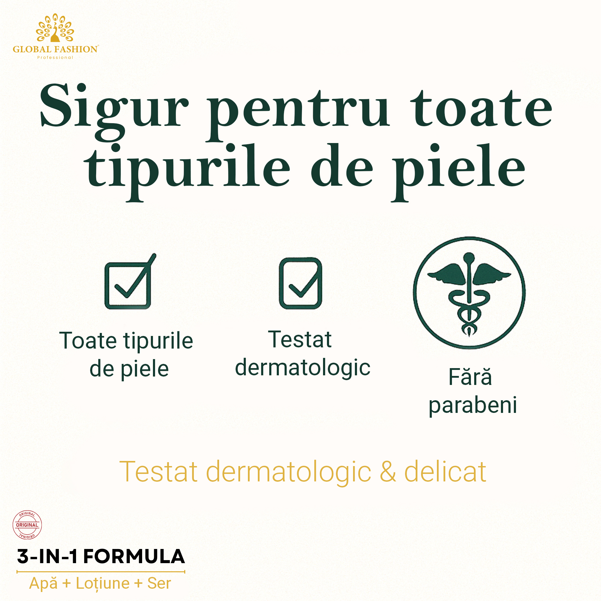 • Glicerină & Acid hialuronic – hidratare profundă, menținerea umidității naturale