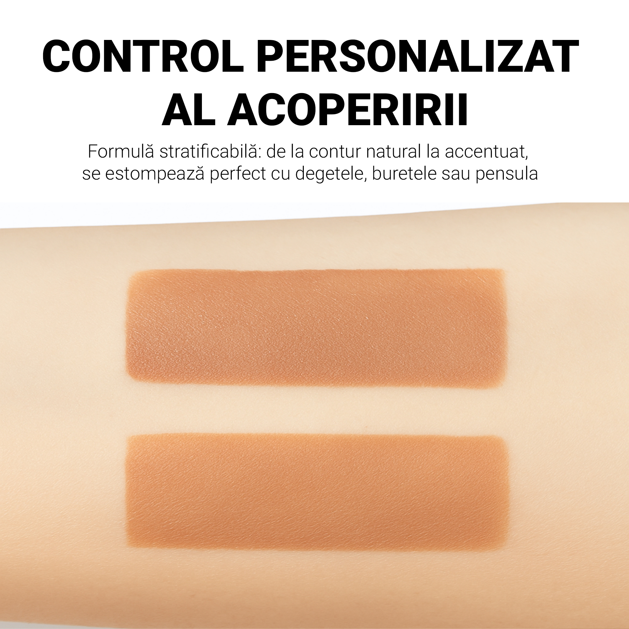 • Acoperire buildable: poți obține un rezultat natural sau mai intens, în funcție de preferință.